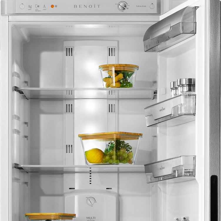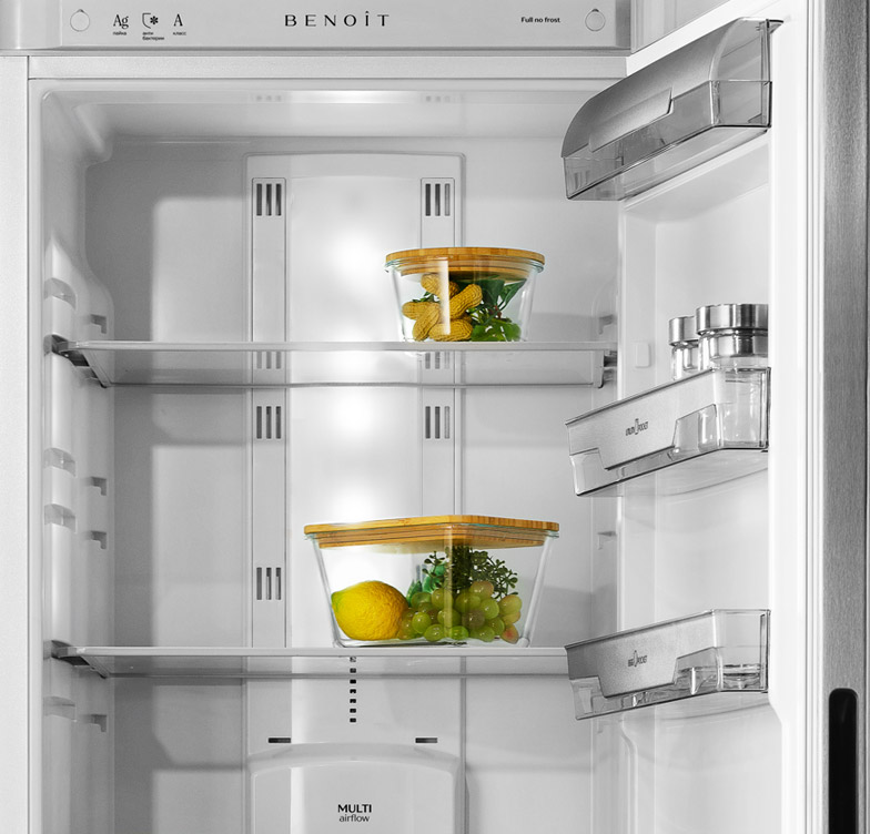 Равномерное распределение воздушных потоков по холодильному отделению и точное поддержание оптимальной температуры для хранения продуктов.