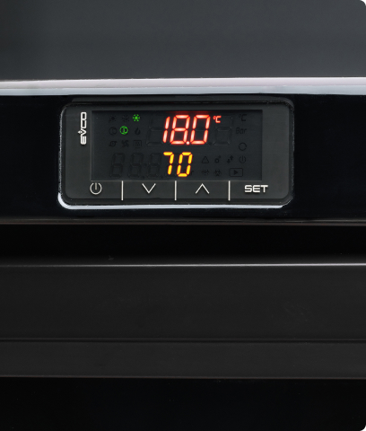 Выставите оптимальную температуру и влажность. Идеальная температура хранения сигар — 16-22 градуса, влажность — 65-72%. Система автоматически поддерживает выставленные параметры.