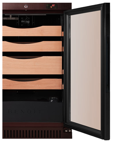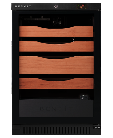 Принцип - "включил и забыл" со 100 % гарантией поддержания заданных параметров. Датчик уровня жидкости, облачный сервис по онлайн мониторингу делают хьюмидоры Benoit востребованными как среди профессионалов, так и новичков. Хьюмидоры Benoit не требуют наблюдения за своей работой. При этом внутри камеры поддерживаются оптимальные и стабильные условия для правильного и бережного хранения сигар. Уникальность устройств Benoit в том, что они созданы инженерами, а не маркетологами